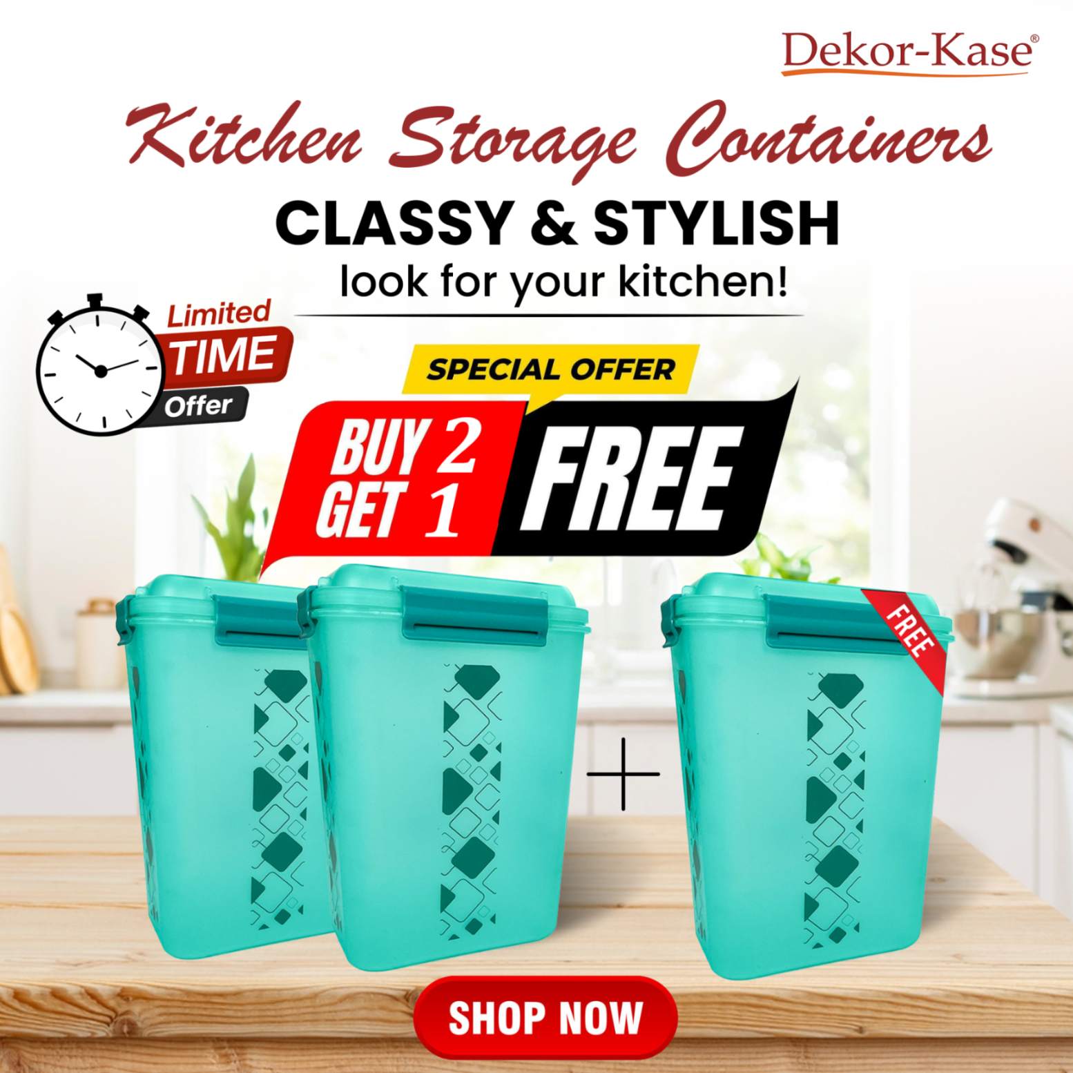 Keep your kitchen neat and fresh with this Set of 3 β 4700 ml airtight containers. Perfect for storing rice, atta, sugar, snacks, and more. Designed using food-grade, BPA-free plastic, these containers are safe, strong, and ideal for Indian kitchens.