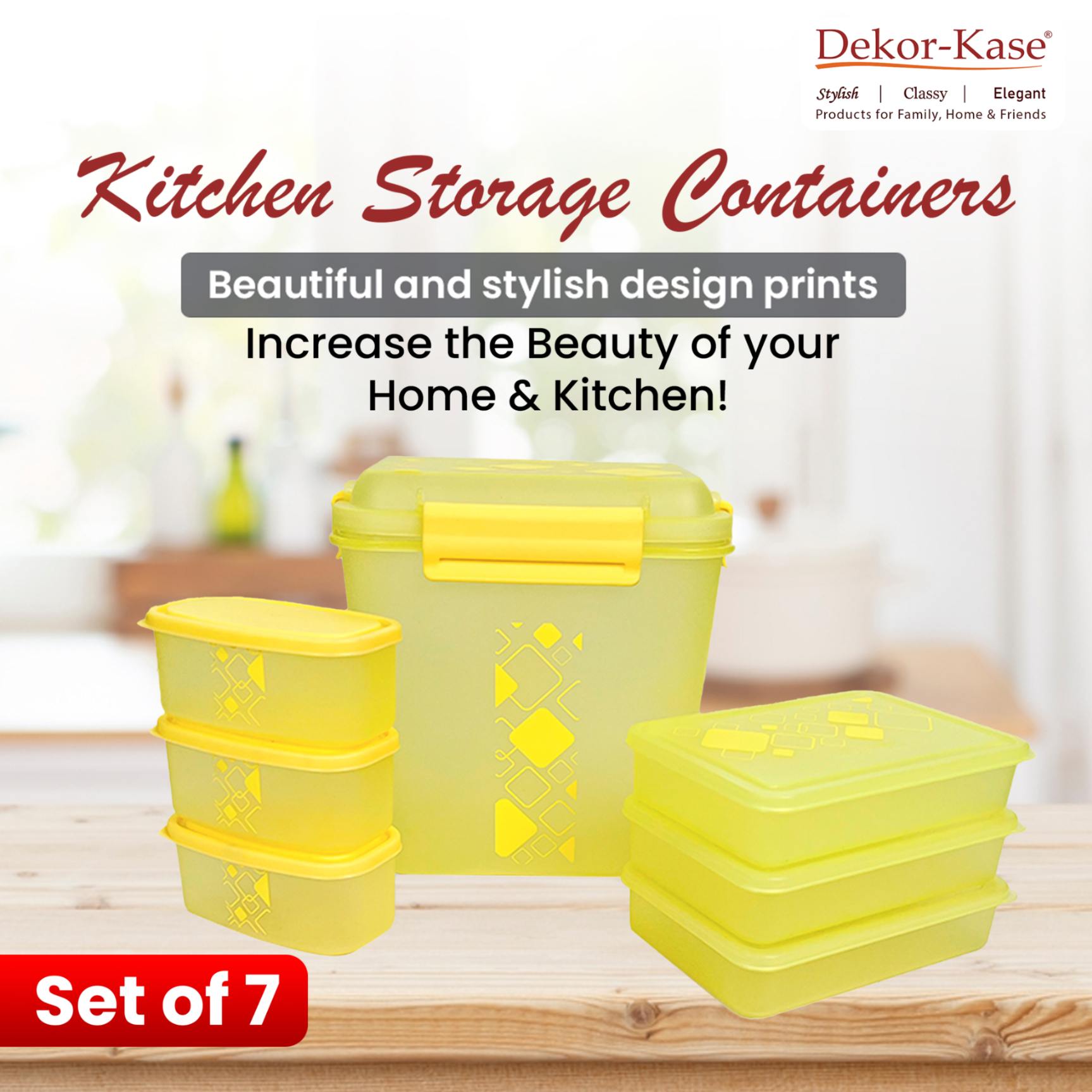 Organize your kitchen smartly with the Dekor-Kase 7-Piece Semi-Transparent Storage Container Set, designed for convenience, freshness, and style.