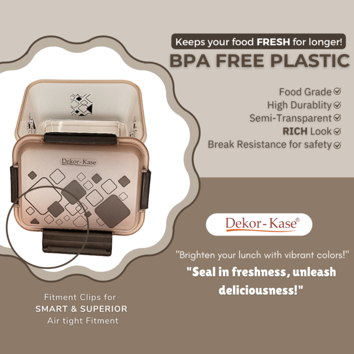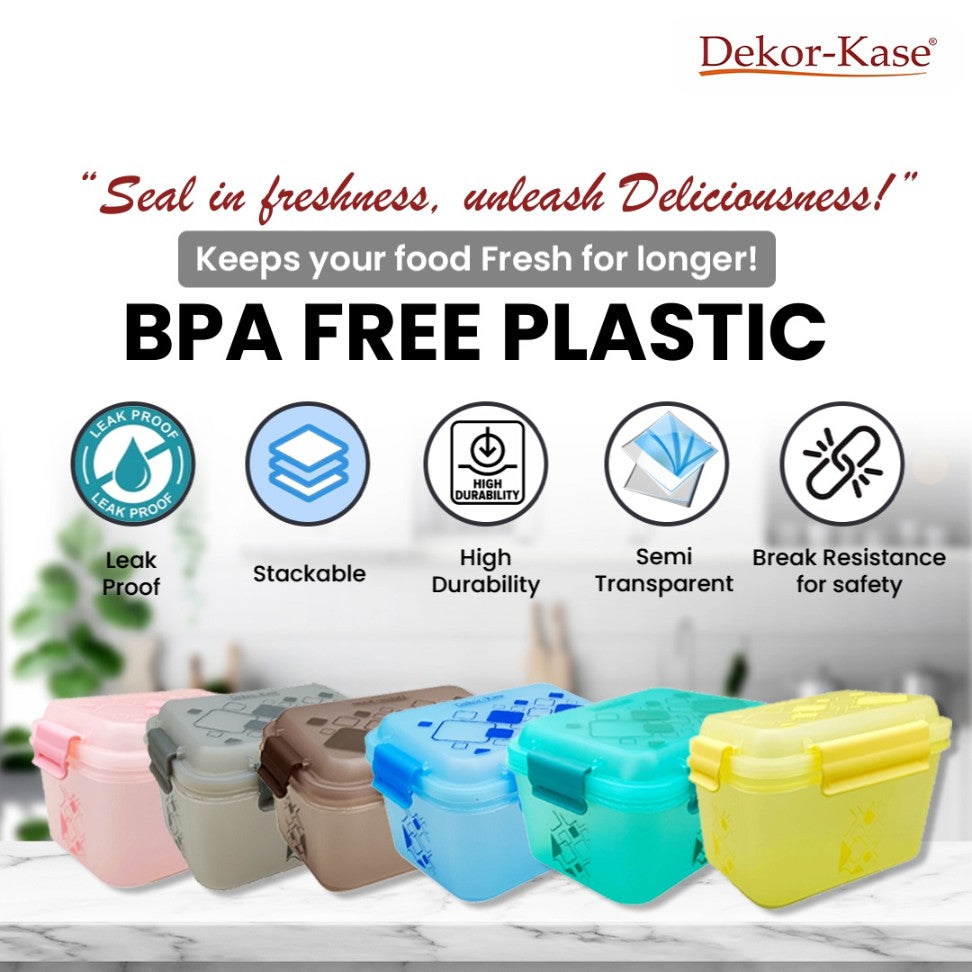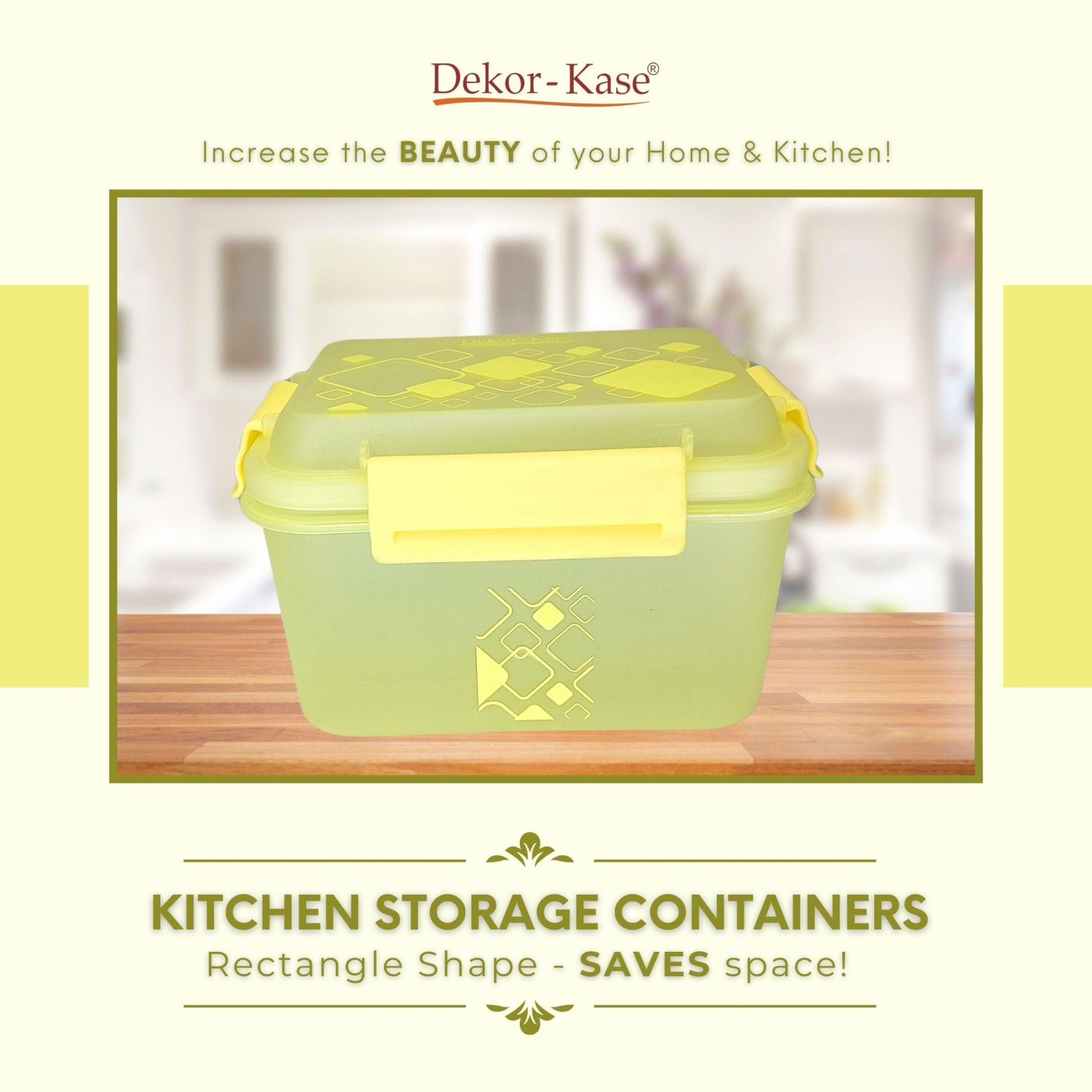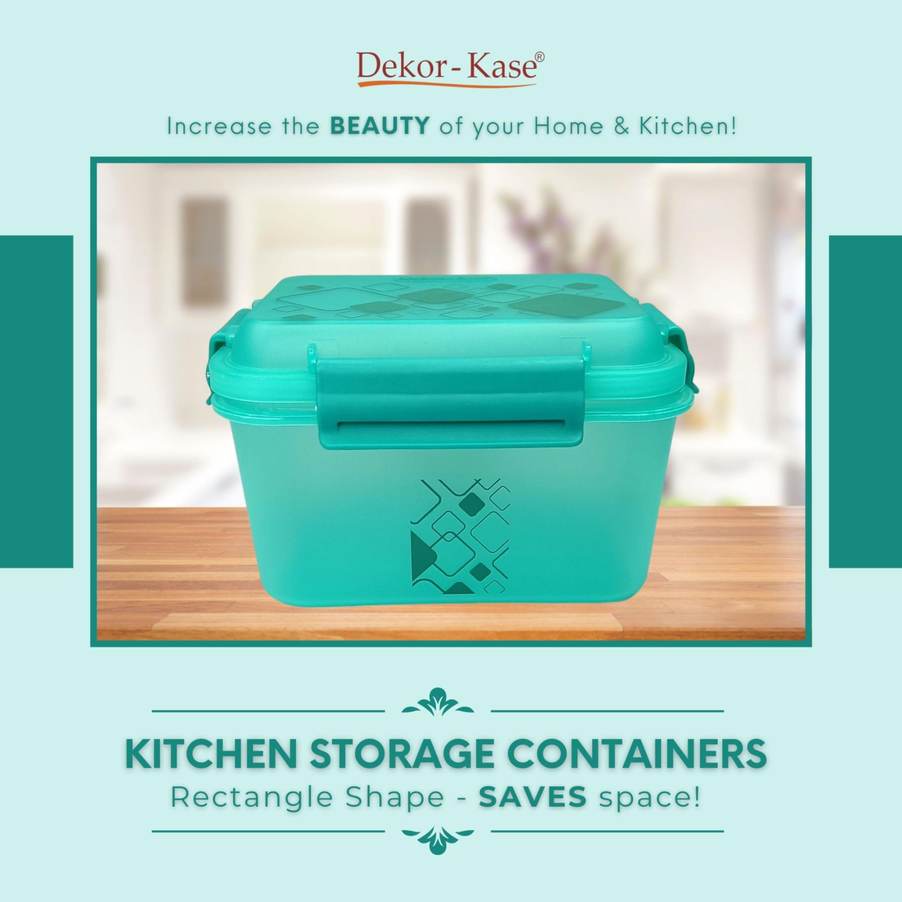 Stylish & Unique Design Large capacity with space saving Compact Size Food Grade plastic Leak proof silicon seal Attractive colours & prints Ideal for storage of all types of food (e.g. Grains, Atta, Daals, Pulses, Snacks, cut vegetables etc)