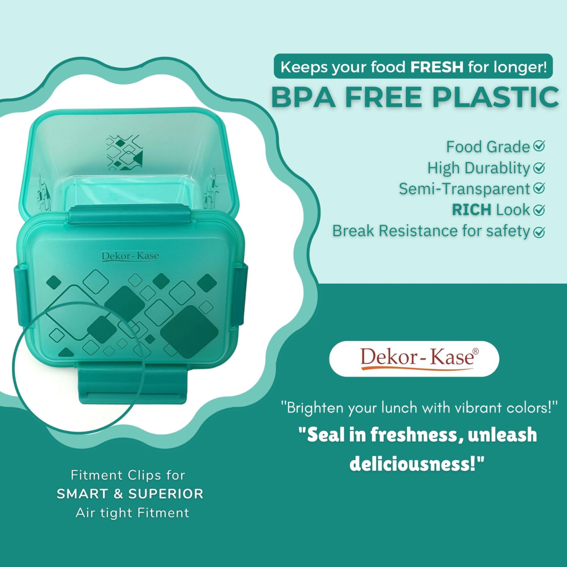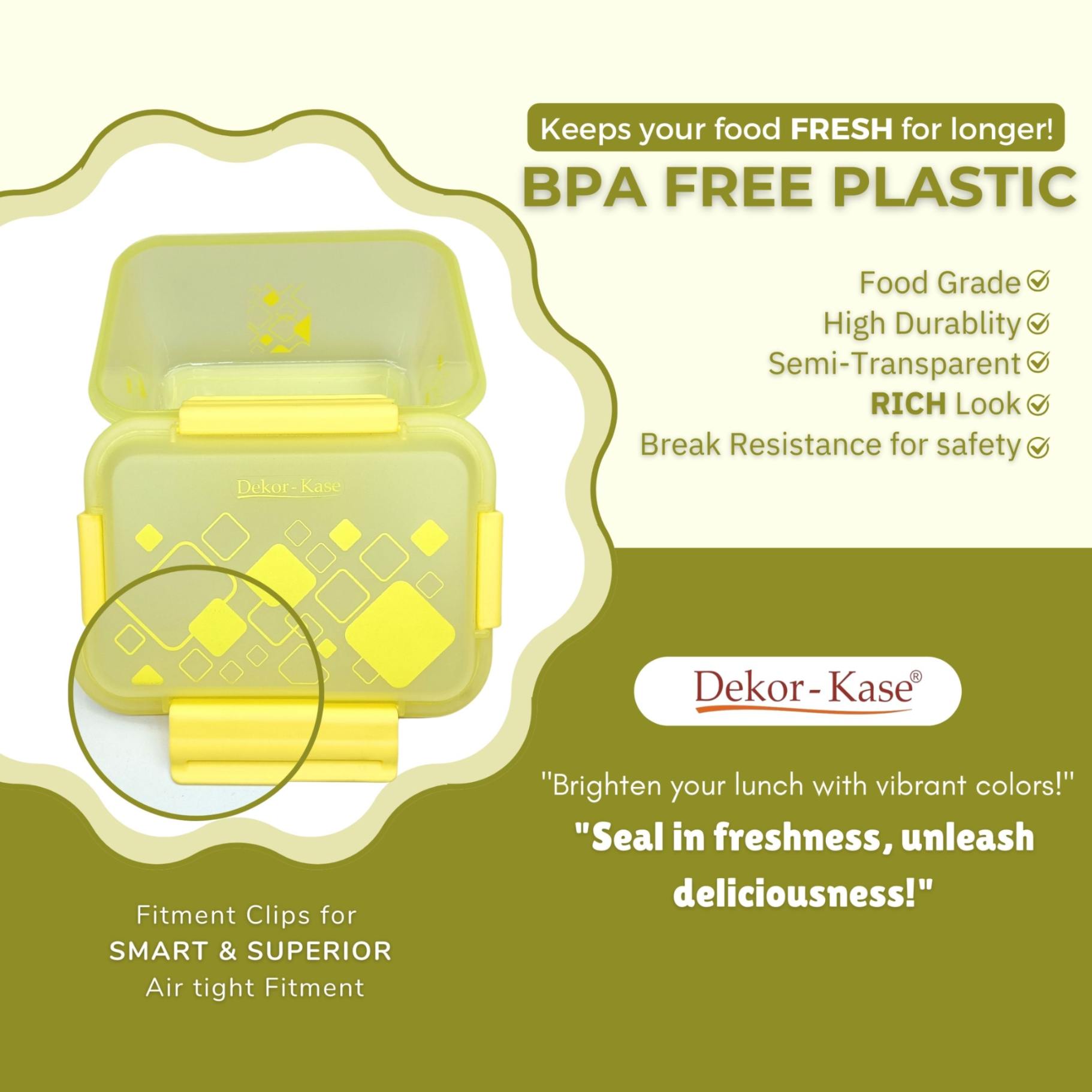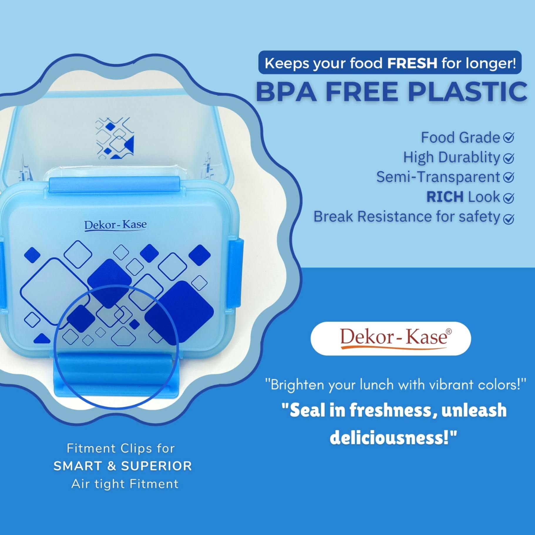 Stylish & Unique Design Large capacity with space saving Compact Size Food Grade plastic Leak proof silicon seal Attractive colours & prints Ideal for storage of all types of food (e.g. Grains, Atta, Daals, Pulses, Snacks, cut vegetables etc)