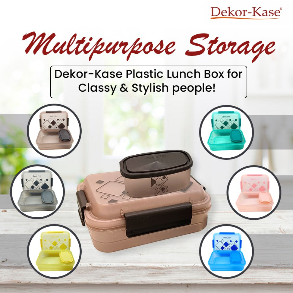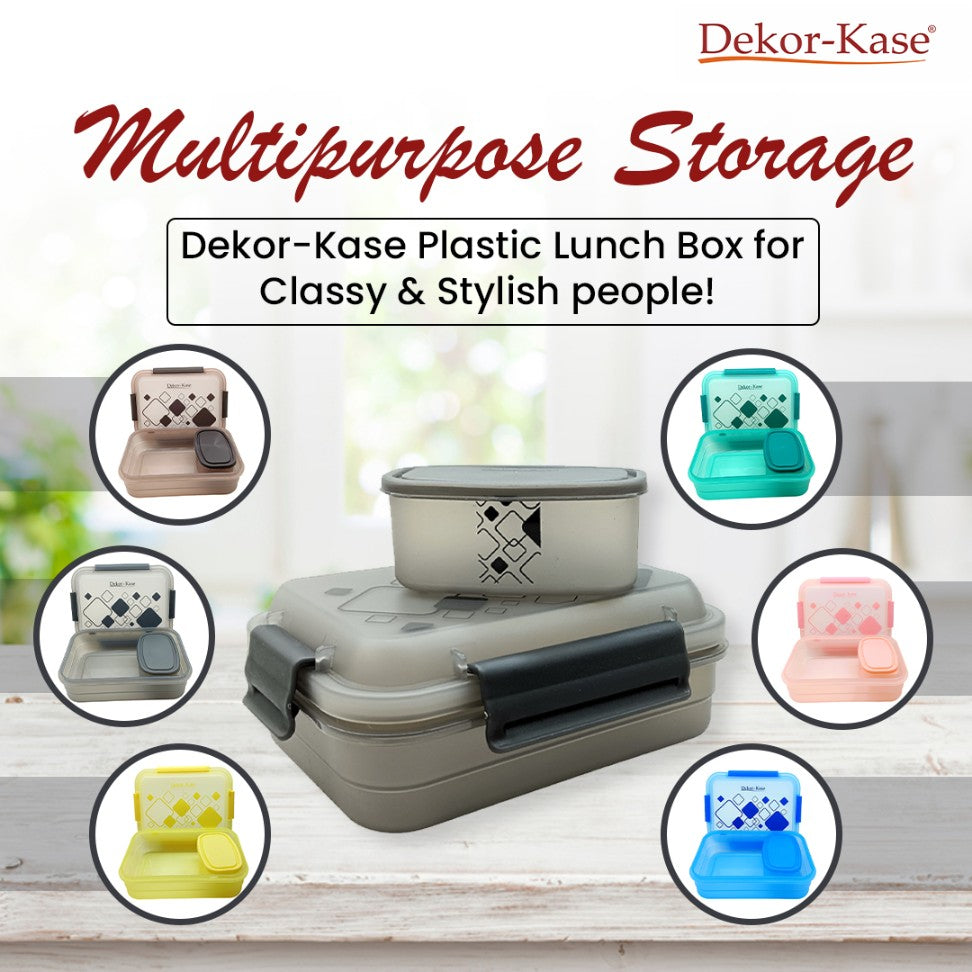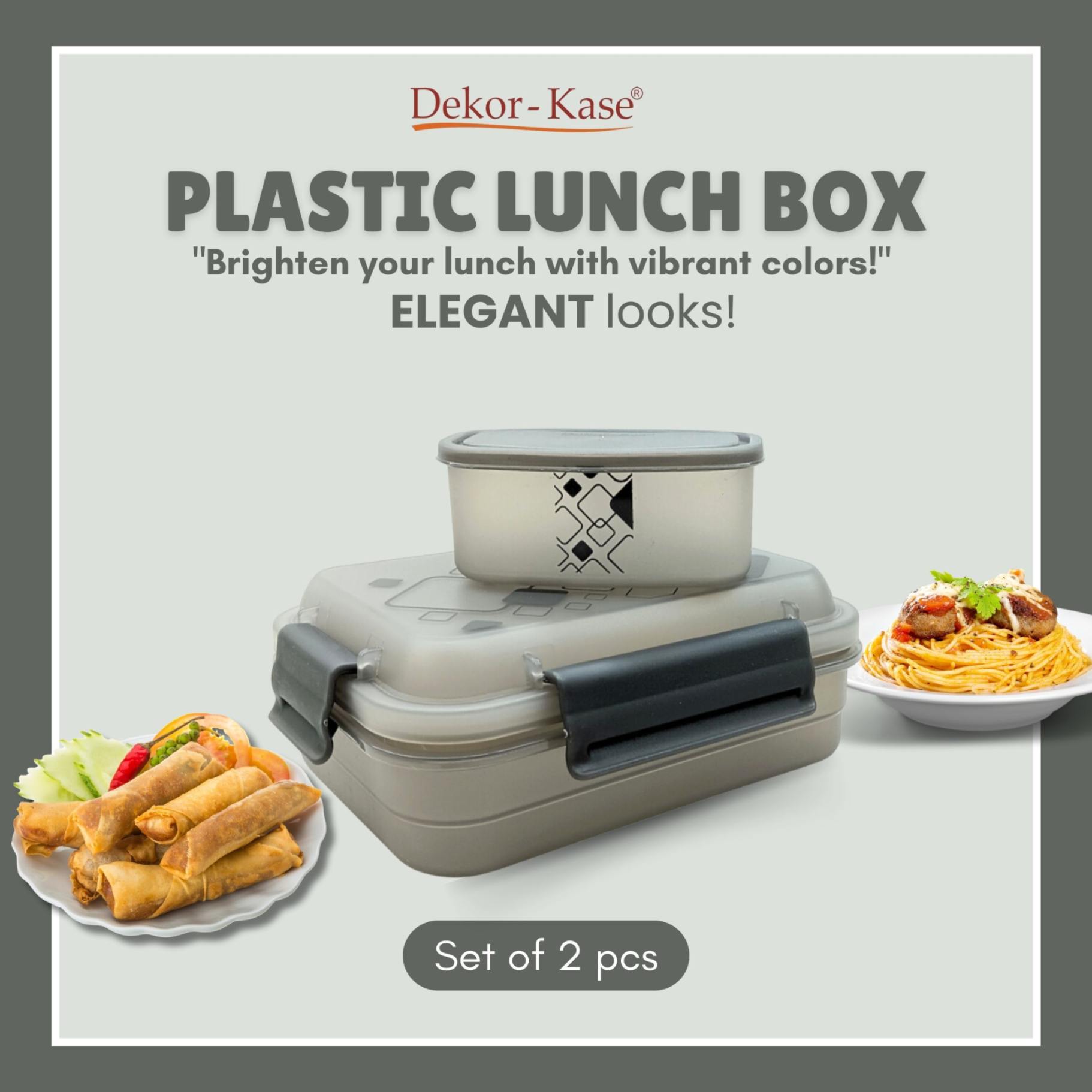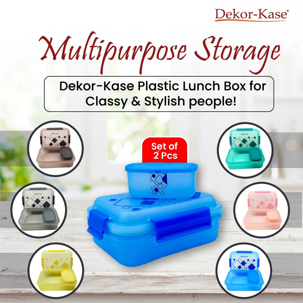Plastic Lunch Box (Set of 2 pcs : 1 "Clip On"SB-H45 + 1 "Mini"SB-H44 ) Stylish & Unique Design Large space with Compact Size Includes 1 Vegetable Food Grade plastic Leak proof silicon seal Attractive colours & prints