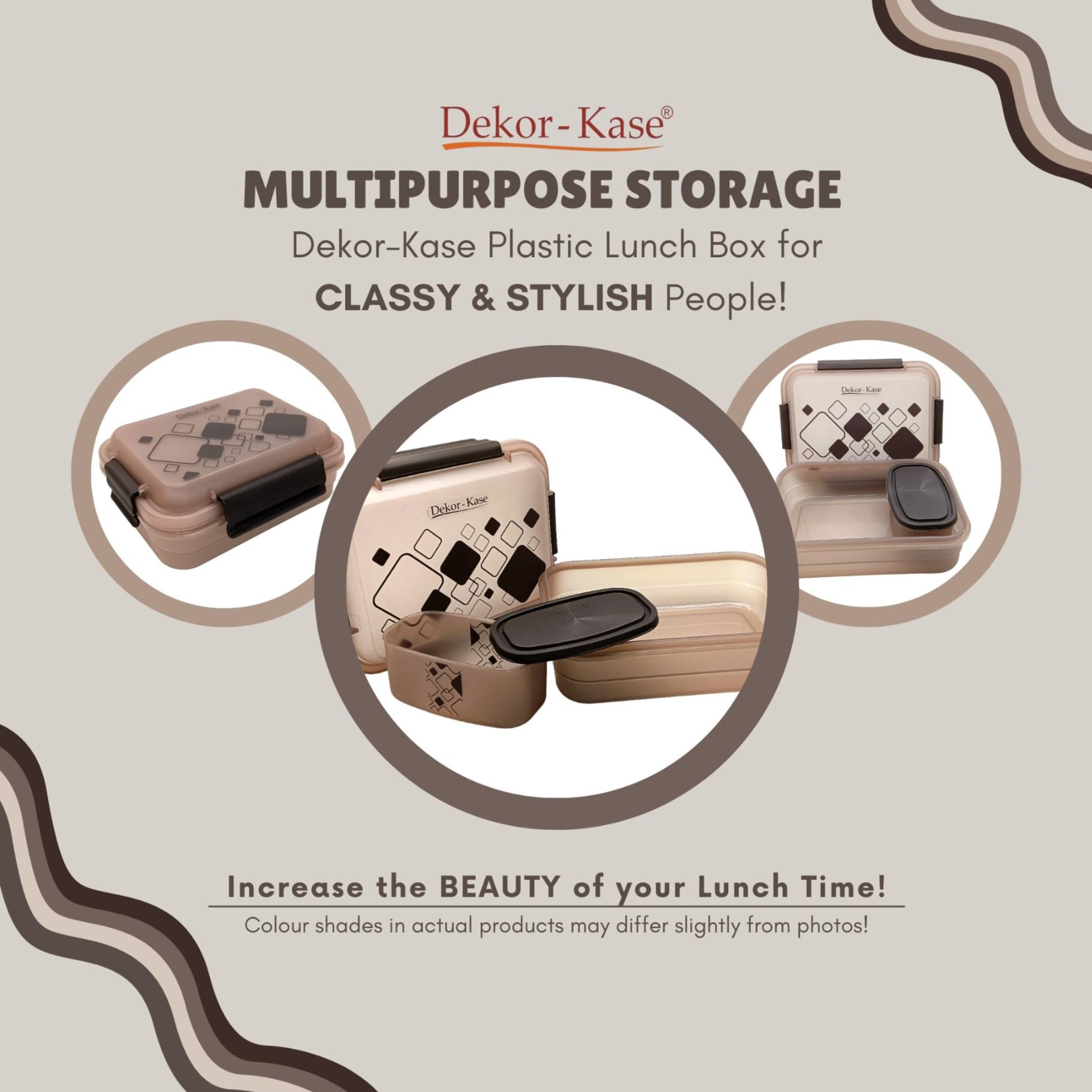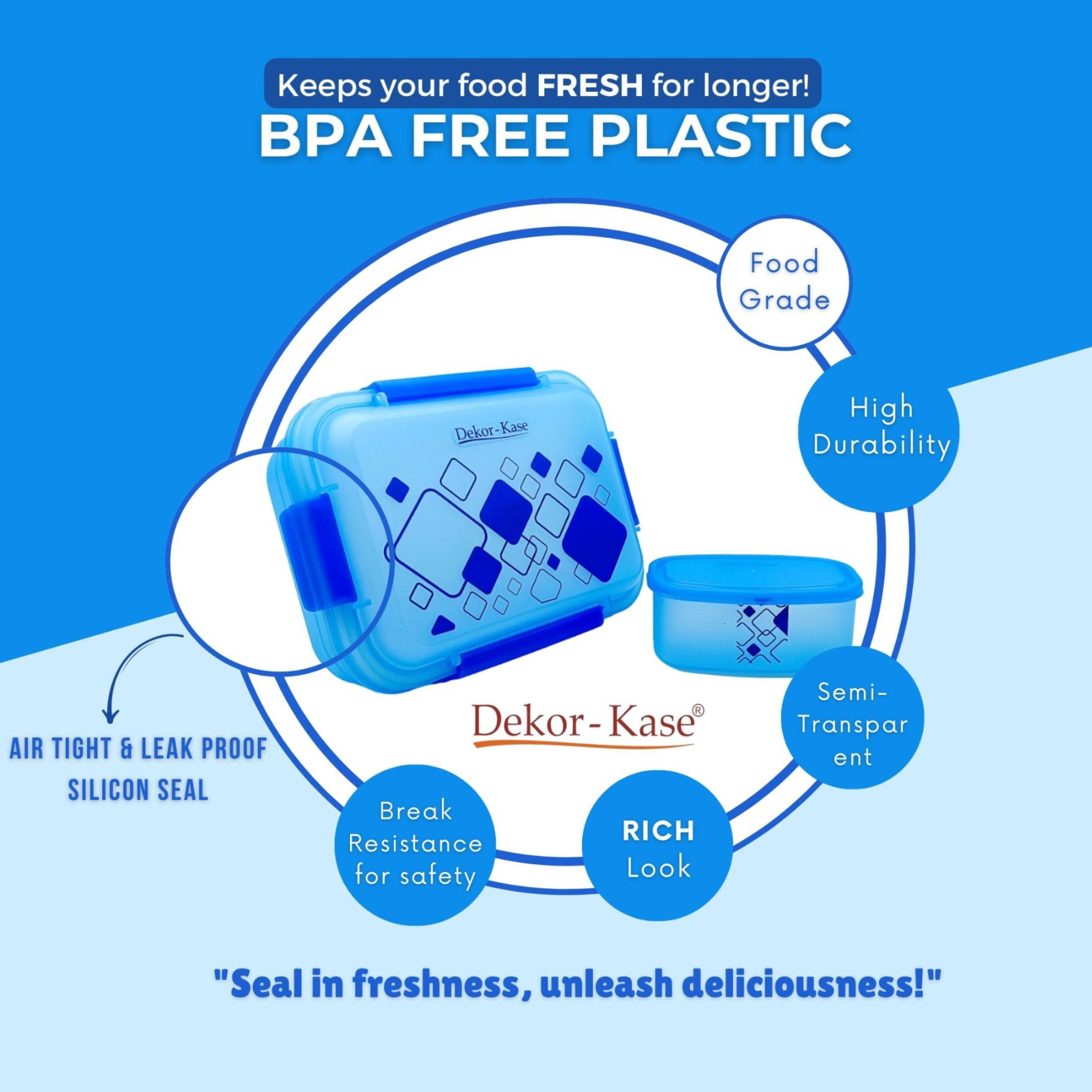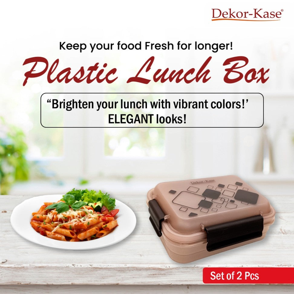 Plastic Lunch Box (Set of 2 pcs : 1 "Clip On"SB-H45 + 1 "Mini"SB-H44 ) Stylish & Unique Design Large space with Compact Size Includes 1 Vegetable Food Grade plastic Leak proof silicon seal Attractive colours & prints